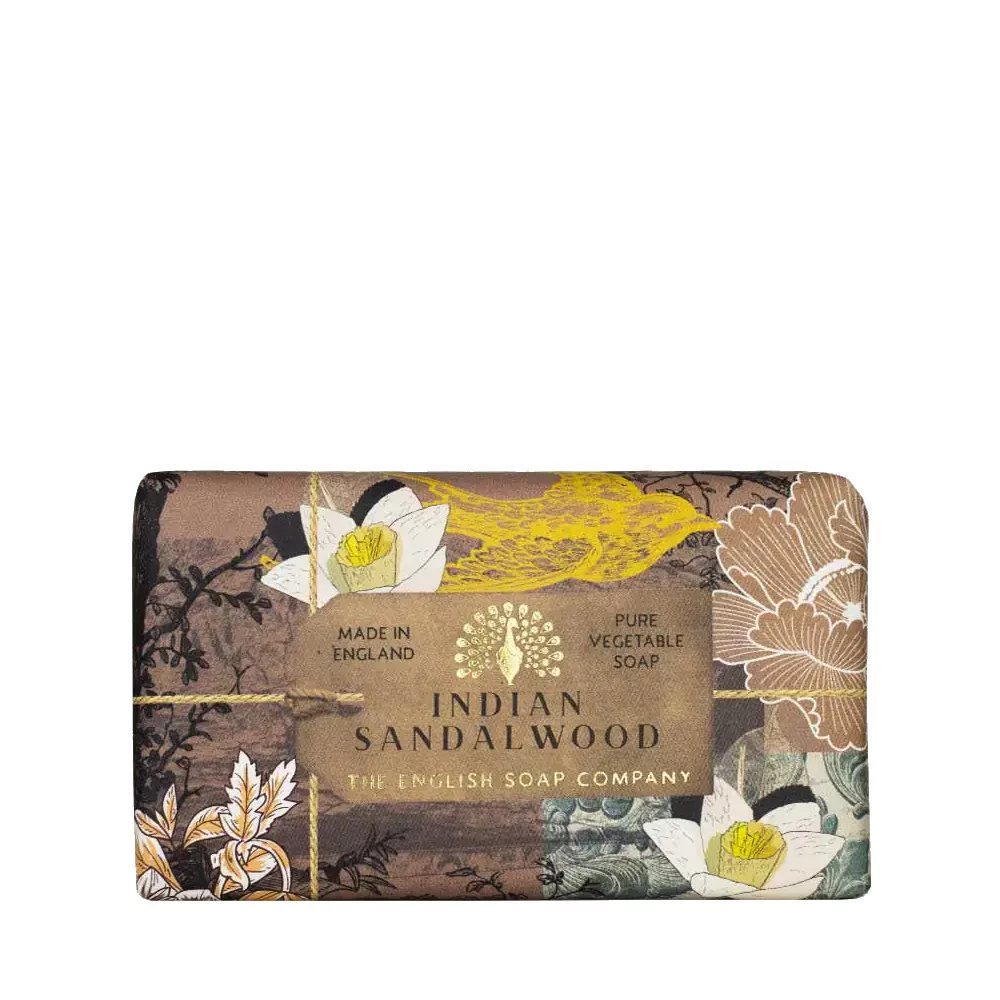 A beautifully fragranced, vegan friendly, luxury soap bar suitable for everyday use. Made using pure vegetable oils and enriched with shea butter for a sumptuous lather to keep your skin feeling nourished. This Anniversary Indian Sandalwood Soap is wrapped in fully recyclable paper and decorated with brightly painted illustrations inspired by nature. A perfect addition to your bathroom, or an ideal token gift for someone special.