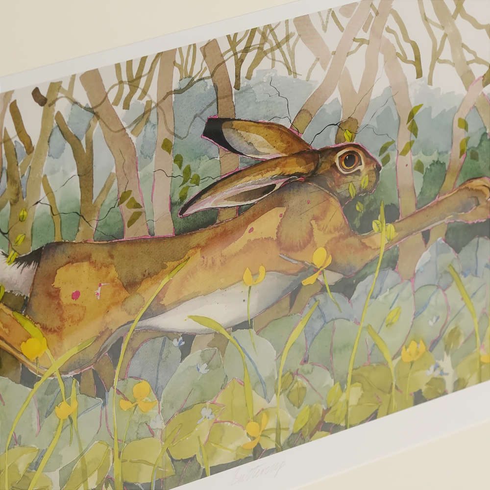 The ‘Buttercup’ limited edition art print is a charming and lively piece of art featuring characterful hare, captured in Mary Ann Rogers’ signature style. The original watercolour has been faithfully reproduced as a high-quality print, preserving the rich detail and expressive brushwork. Presented in an elegant frame, this print brings a touch of rural charm and light-hearted energy to any room.