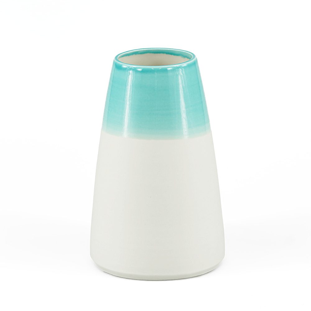 Porcelain vase with a sleek, modern shape. Features delicate watercolour glazing on the outside for a soft look. Handmade with care, showcasing fine craftsmanship. Each piece is unique, with slight variations in the glazing. A versatile design that complements any space.