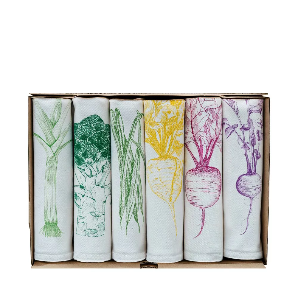 This set of six dinner napkins is perfect as a thoughtful gift idea, whether for a housewarming, birthday, or just to surprise allotment lovers who are growing vegetables in their garden or a quirky present for gardeners who have everything.