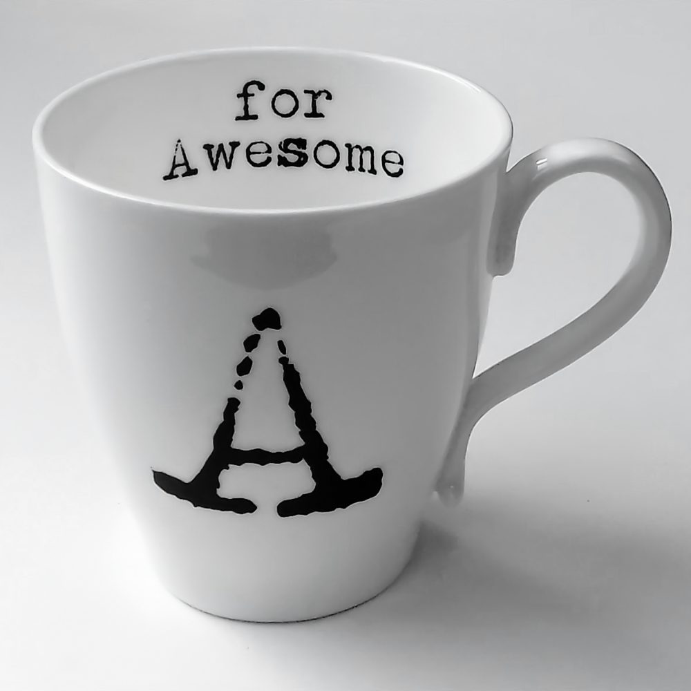 Original design of fine bone china mug, handmade in England. Thin lipped with a properly designed handle, so that it is nice to drink out of.