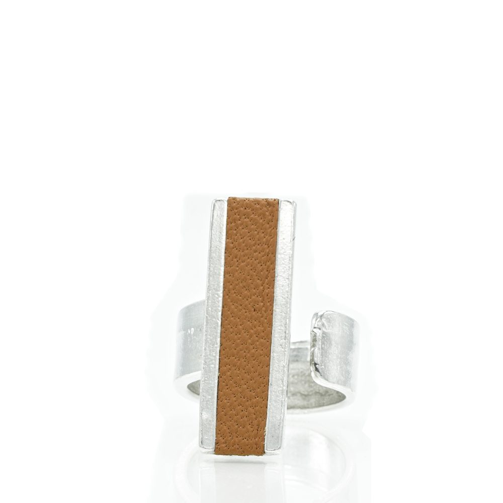 This handcrafted adjustable ring feature a blend of pewter and leather, creating a unique and contemporary design. The ring is designed to be adjustable, ensuring a comfortable fit for all sizes.