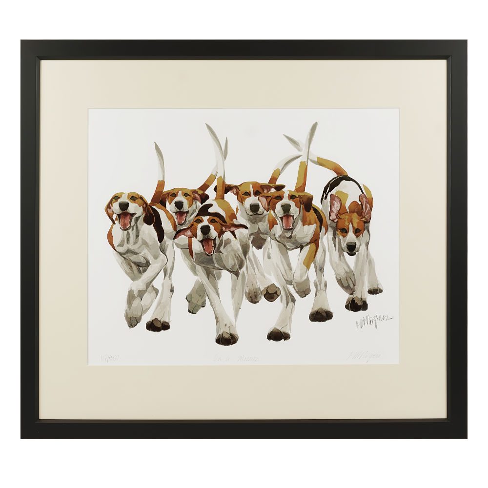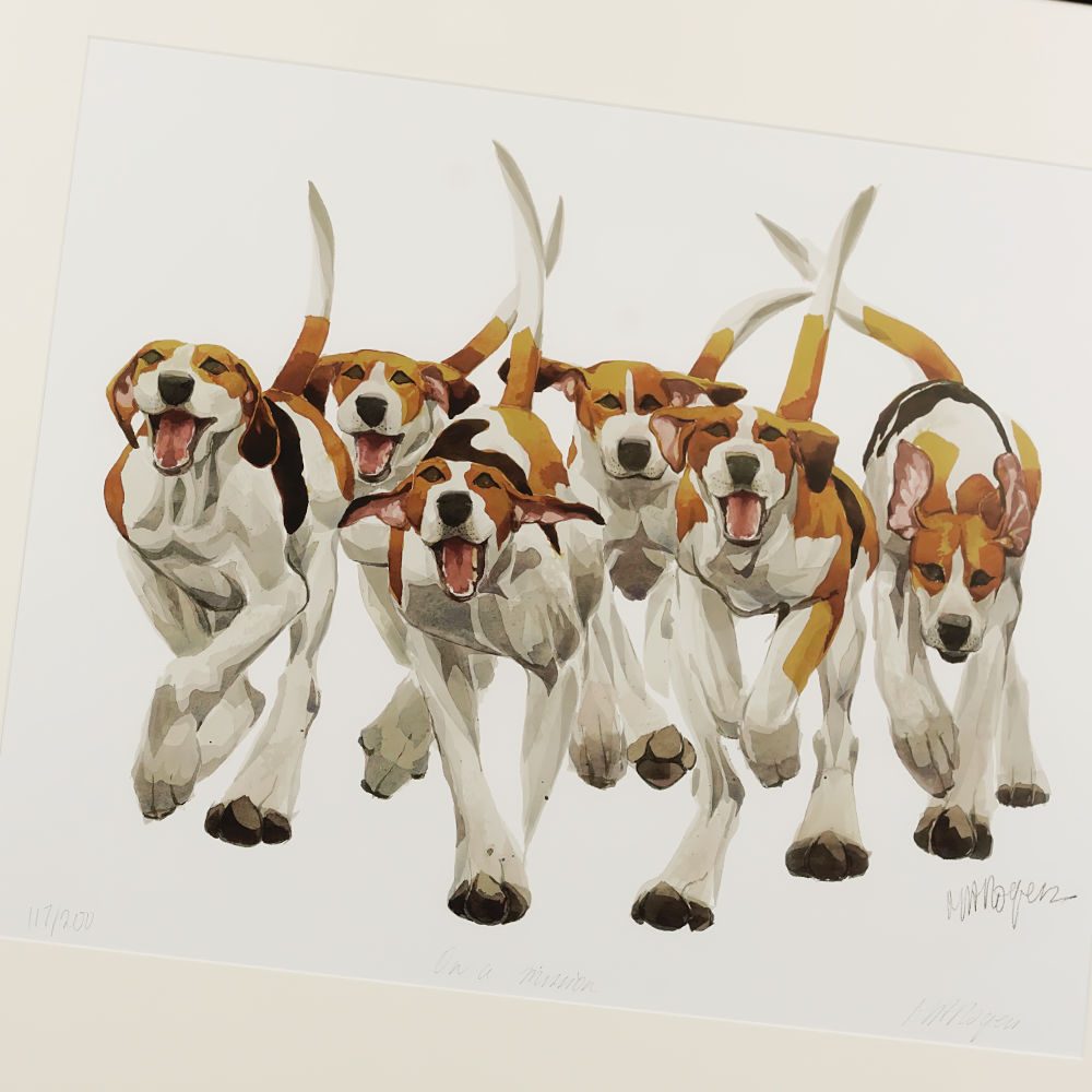 The ‘On A Mission’ is a charming and lively piece of art featuring characterful Hound dogs, captured in Mary Ann Rogers’ signature style. The original watercolour artwork has been faithfully reproduced as a high-quality print, preserving the rich detail and expressive brushwork. Presented in an elegant frame, this watercolour style print brings a touch of rural charm and light-hearted energy to any room.