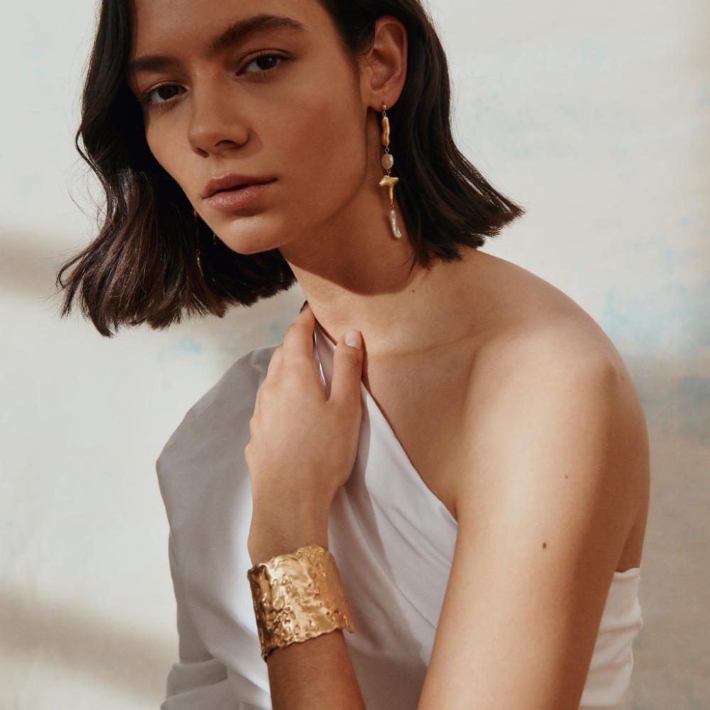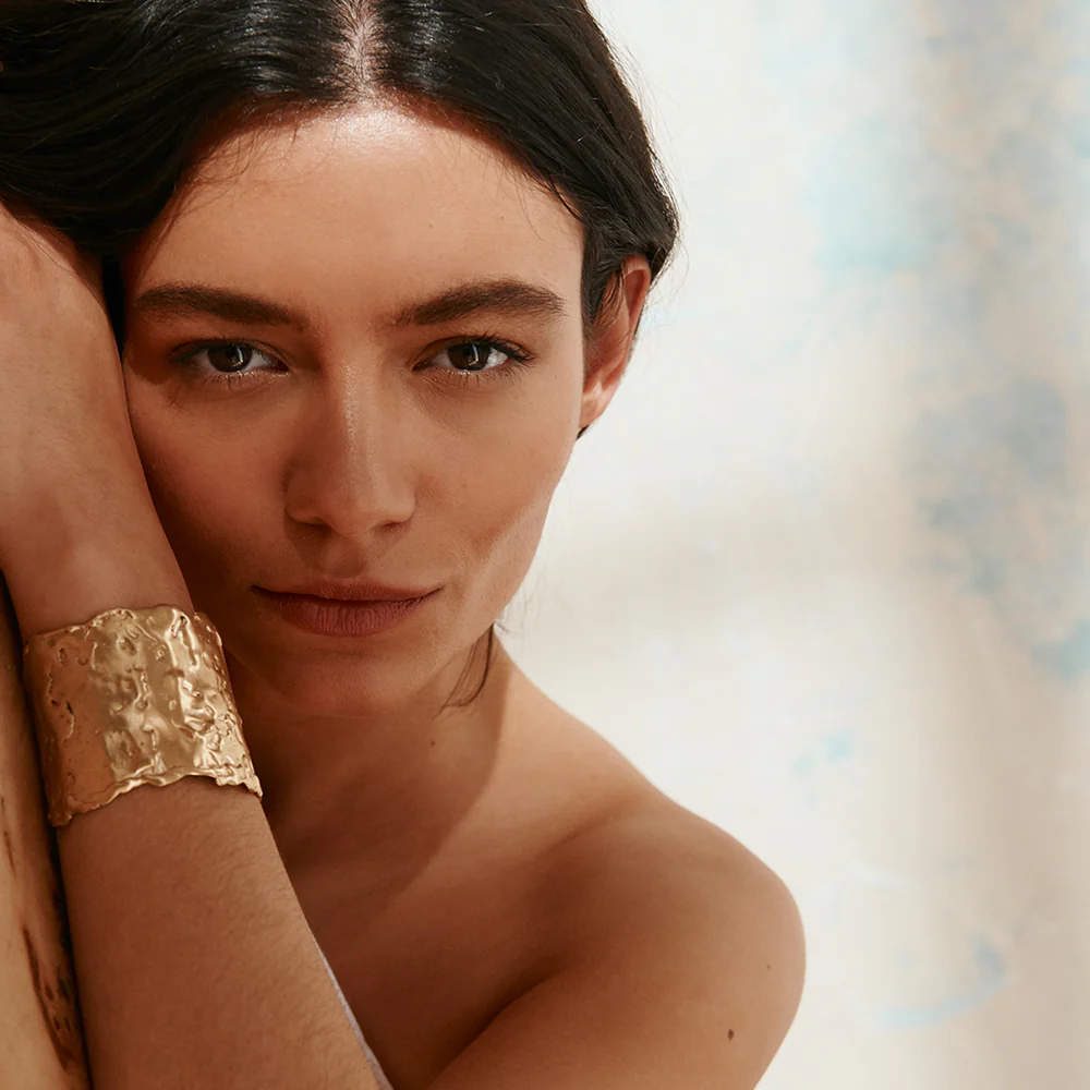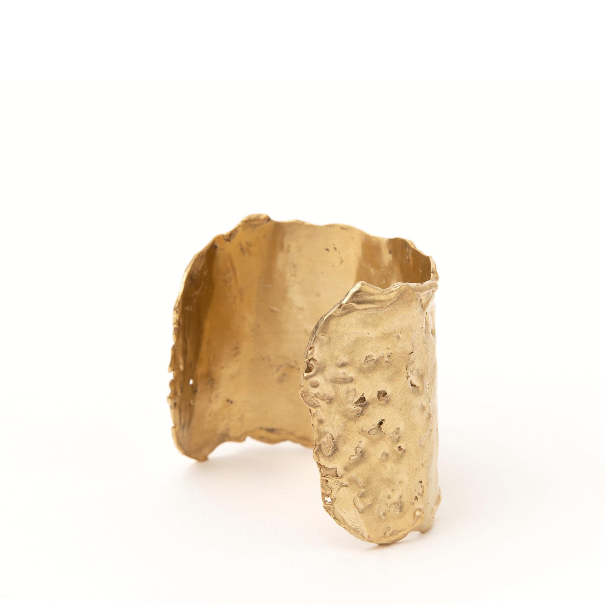 The Sal cuff bracelet from designer Carolina De Barros. Salt makes our eyes cry at the same time as enhancing the flavour of living. It doesn’t leave anyone indifferent: there’s always a reaction. By melting wax to create a grainy texture on the metal, this cuff bracelet introduces one of these reactions to the spice of life.