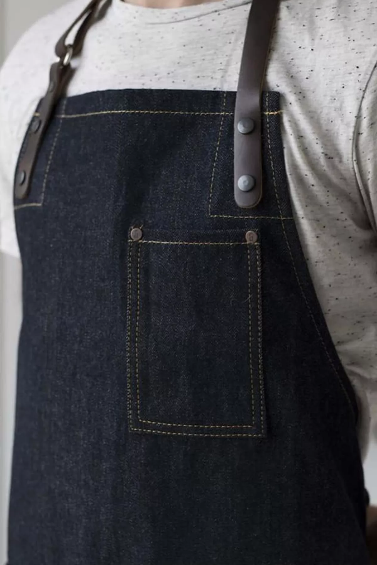 Leather aprons are crafted from premium Italian leather, vegetable-tanned using natural tannins to age beautifully over time.